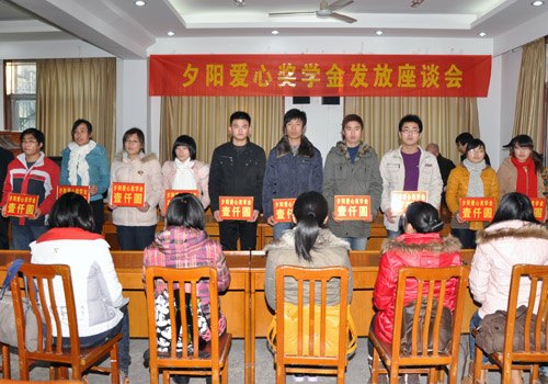 座谈会上,校区(学院)学生处处长宋传文介绍了本次奖学金的评定情况,并宣读了《关于表彰山东科技大学第二届“夕阳爱心奖学金”获奖学生的决定》。夕阳爱心奖学金是由校老教育工作者协会爱心捐助委员会成立的助学基金,用于资助品德端正、学习刻苦优良、生活俭朴的困难大学生完成学业;上一届受到奖励的5名毕业生中,2名学生考取了研究生,2名采矿专业的学生全部到了煤炭企业工作。会议对荣获2011年度“夕阳爱心奖学金”的李婷婷等35名学生进行了表彰。