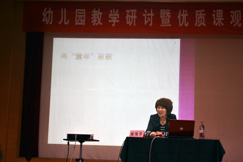 交流会上,科大幼儿园园长梁荣芹结合幼儿园的课程实际作了题为《特色阳光教育,让孩子的生活更精彩》的专题报告。报告配以活动照片及视频,给每位参会者以深深的感触。“科大幼儿园的工作做得太扎实了!”与会人员不时发出这样的感叹。