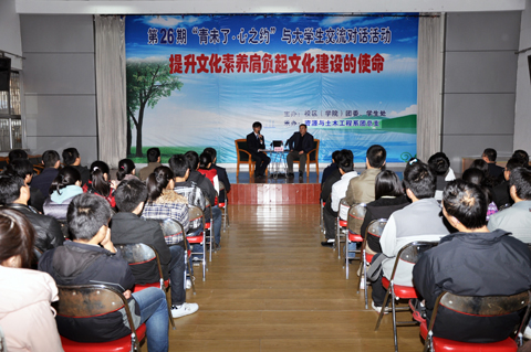 11月15日,由校区(学院)团委主办,资源与土木工程系团总支承办的第二十六期“青未了·心之约”与大学生交流对话活动在大学生素质拓展中心举行。本次对话交流以“提升文化素养,肩负起文化建设的使命”为主题,邀请到泰安市委党校姚荣贤教授作为嘉宾与大学生进行了对话交流。