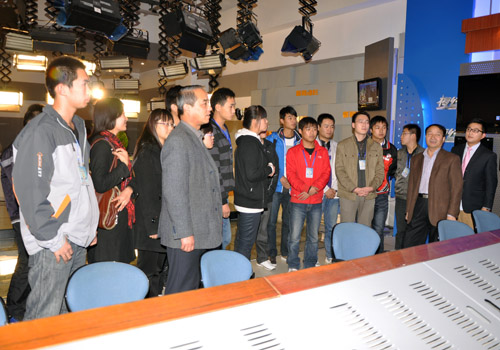 11月8日,在第十二个记者节来临之际,校区(学院)大学生记者团、大学生电视台的学生记者们赴泰安电视台新闻中心参观学习,并为奔波在一线的新闻工作者们送上节日的祝福。