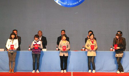 会上,王以功宣读了《关于表彰2010-2011学年学生先进集体、先进个人的决定》。采矿09-2班等4个班级获得“先进班集体标兵”称号,土木09-1班等17个班级获得“先进班集体”称号,吕娟娟等398名学生获得“优秀学生标兵”称号,刘彤等774名学生获得“三好学生”称号,王海丽等634名学生获得“优秀学生干部”称号,孙兆龙等699名学生获得各类单项荣誉称号。随后,与会领导为先进集体和先进个人代表颁发了荣誉证书。