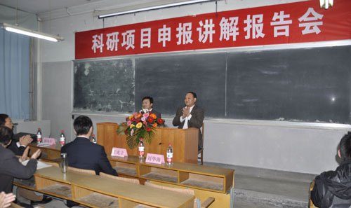 ,学校科研处处长韩作振教授应邀为校区(学院)作了科研项目申报讲解报告会,各系部的教师参加了报告会。报告会由科研部主任刘华海主持。