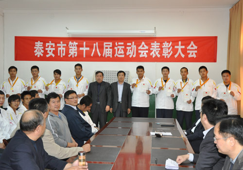 10月14日,校区(学院)召开会议,表彰在泰安市第十八届运动会上获奖的校区(学院)运动员。校区(学院)管委会副主任(副院长)王以功,基础课部党总支书记胡灿新,基础课部主任刘然慧,体委办公室主任石玉龙出席了大会。会议由校区(学院)学生处处长宋传文主持。