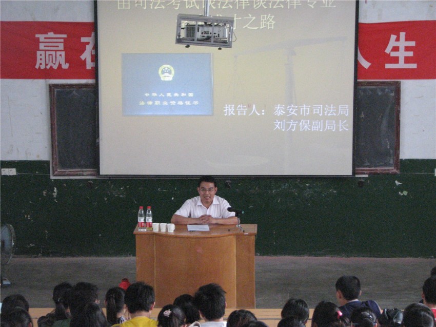 2011年7月1日,泰安市司法局副局长刘方保应邀为文法系09、10级法学专业学生作报告。报告题目为“由司法考试谈法学专业学生成才之路”。目的在于帮助同学们进一步认识司法考试的重要性,帮助同学们树立目标,顺利成长成才。本次报告会由文法系主任张学银主持。