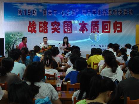 中国为什么与诺贝尔奖无缘?钱老的世纪之问让人们认识到培养具有创新思想的人才是中国当前的一个大问题。就此问题,陈向峰首先指出中国现阶段的教育方式存在泛技术化,泛政治化的误区,教育方式主流的仍是专才教育,并由此抛出“大学在做什么”“大学该做什么”“大学的宗旨是什么”三个问题,引人深思。接着陈向峰表示,大学应是研究高深学问的机构,培养健全人格的学府。高水平大学应以人才培养为中心,“大学之大,非大楼之大,乃大师之大”,强调只有创造教育才是大学的根本,独立,探索,批判与奉献是创造教育要培养的学生的四种精神。最后他以图表形式引发人们对大学生创造性思维发展的思考,在指出制约大学生创新能力培养的自身与外界因素后,陈向峰提出相应对策:突破传统思维枷锁;建立创造教育管理体制和保障体制。表示“走出沼泽,回归教育本质,教育的春天才会到来”。陈向峰还谈到大学生步入社会如何迈好第一步以及在现实中如何保障健康良好的心态。为大学生初入社会提供可鉴意见与建议,助其在就业道路上顺利前进。随后,陈向峰等与现场同学进行了交流,对同学们提出的问题一一作了解答。