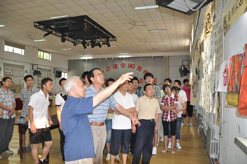 活动最后,来自各系的同学代表依次参观了书画展,苍劲的松柏,巍峨的长城,寓意深刻的爱国宣传画,无一不让在场的同学感受到党的光辉,祖国的伟大