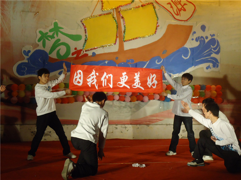 在这春暖花开、万物复苏的季节,柔情似水的华尔兹舞蹈和扣人心弦的武术表演揭开夜晚的帷幕。晚会现场灯光闪耀,歌舞连绵,处处绽放着大学生的青春气息。动感纯美的舞蹈《舞加舞》带来视觉的盛宴;《新不了情》则感受旋律的优美,给人以听觉的震撼;小品《好好学习不挂科》更是给同学们深刻的启迪。舞蹈《因为我们更美好》将晚会的气氛推向最高潮,欢呼生彼此起伏。节目间歇,欢快的兔子舞、动感的恰恰还有十六步轮番上阵。伴随着音乐的旋律,同学们集体起舞,陶醉在这春风和煦的夜晚。