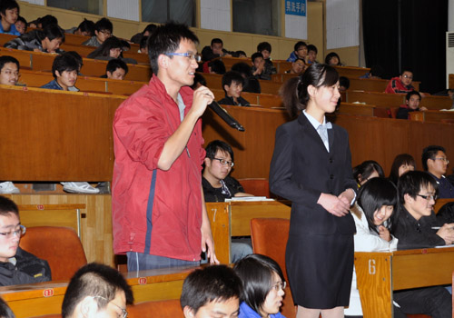 一提到具有自然与文化双遗产的泰山,张用蓬便滔滔不绝了。活动中,张教授生动而又详细地把泰山文化全面地呈献给了在场的同学。他把泰山归纳为旅游山、政治山、宗教山、文化山、民俗山、精神山六个方面,并联系历史资料,逐条作出详细的介绍。当谈到泰山文化精神与大学生发展时,他指出大学生要具备勇于攀登的超越精神,奉献牺牲的价值取向,不让土壤的博大情怀,捧日擎天的光明追求,国泰民安的美好寄托等精神。他希望同学们能敞开心扉,拥抱泰山的一草一木,并与之相融合,真正去感受她的种种奥妙。张教授谦逊风趣的语言不断博得同学们的热烈掌声。随后,大家就感兴趣的泰山文化、泰山民俗等问题进行提问,张教授都一一进行了解答。