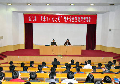 12月2日,由校区(学院)学生处、团委主办,资土系承办的第八期“青未了•心之约”大学生交流对话活动在东校园报告厅举行,此次活动邀请到山东省第五地质矿产勘查院院长赵长河为嘉宾,就大学生就业问题与大学生进行了对话交流。