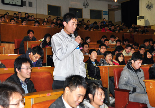 活动中,赵院长结合当前的就业形势,对就业“难”与“不难”之间进行了辩证分析,他指出,大学生要认清就业形势,改变就业观念。另外,他对大学生如何应对就业、顺利实现就业谈了自己的观点,提醒大学生应树立正确的择业观,明确目标,看潜力,谋发展。否定了大学生过分挑剔工作环境、过高要求工作待遇的做法,并指出大学生应以寻求“发挥潜能空间”为导向。期间,赵院长还与同学们进行了互动交流,同学们就自己对专业困惑、就业方向等问题进行了提问,赵院长都给予了耐心精辟地解答。