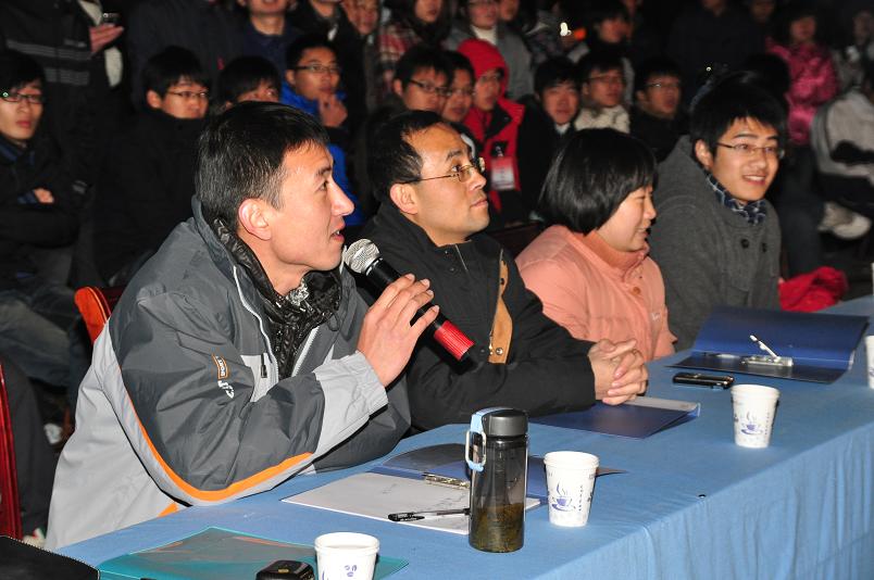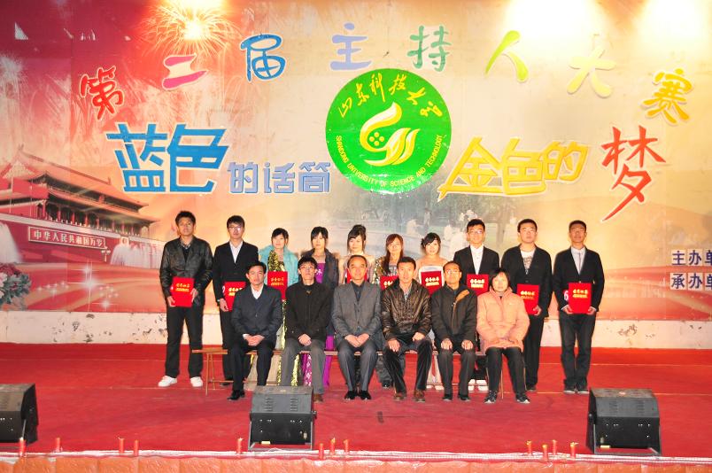 11月13日晚,东校园周末文化广场灯火辉煌,由校区(学院)团委主办,校区(学院)学生会、广播站承办的“蓝色的话筒,金色的梦”第二届主持人大赛在此隆重举行。泰安电视台“天天说事”栏目首席主持人、2008年北京奥运会火炬手李兆峰,校区(学院)团委、各系团总支相关负责老师观看了比赛并担任评委。