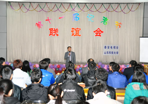 11月6日,校区(学院)与泰安电视台在大学生活动中心联合举办庆祝第十一届记者节联谊活动。泰安电视台新闻中心主要负责人、记者,齐鲁晚报记者,校区(学院)宣传工作人员以及学生记者团成员参加了联谊。校区(学院)党委常务副书记刘传玺会见了与会校外媒体客人。