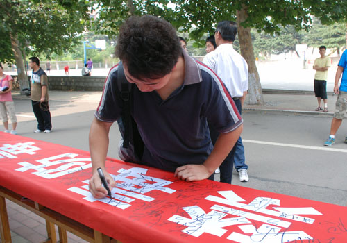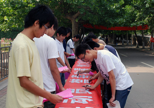 活动吸引了众多学生的积极参与。同学们纷纷在“全民动员,禁毒防毒,创文明校园”的条幅上签上自己的名字,并表示不仅要自己积极参与到禁毒拒毒的活动中来,还要带动身边的人也参与进来。组织者还向过往的学生纷发“参与禁毒斗争,构建和谐社会”——致全校同学禁毒预防教育倡议书,使同学们更加深刻的认识到毒品的危害,增强同学们参与禁毒工作的责任感。还有不少同学自发组织队伍在条幅前喊出“抵制毒品,参与禁毒”的口号以表示自己防毒禁毒的决心。(作者:陈晓霞 摄影:周洋)(责编:许志伟)
