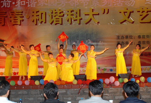 5月22日晚,由泰前街道办事处主办,泰前街道办事处社区、山东科技大学泰安校区(泰山科技学院)团委协办的“魅力泰前·和谐家园芳邻节系列活动”之“炫彩青春·和谐科大”文艺晚会在周末文化广场举行,校区(学院)党委副书记刘传玺,泰山区委常委、宣传部部长赵书刚及有关单位和部门负责人观看了演出。