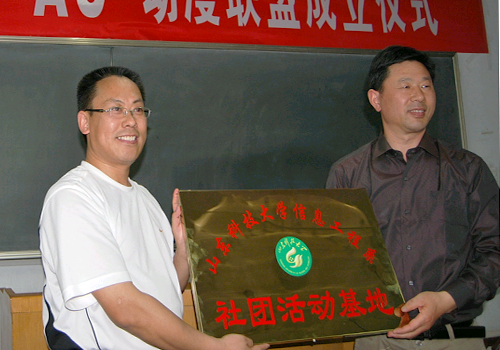 5月4日,是广大青年学子共同的节日,更是泰安校区(学院)所有动漫爱好者的节日,信息工程系动漫组织“信 AC”社团成立暨山东世博文化传播有限公司成为我校社团活动基地的授牌仪式在西校园2207教室隆重举行。山东科技大学泰安校区(泰山科技学院)党委副书记刘传玺教授出席了成立仪式。知名动漫作者慕容引刀亲临成立仪式现场,信息系党政班子与全校动漫爱好者代表一起参加了仪式。成立仪式由社团发起人、信息工程系党总支副书记朱景星主持。