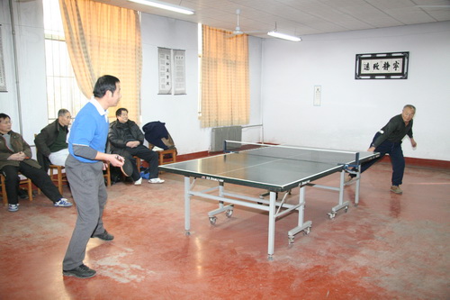近日,离退休工作处和泰安校区(学院)工会联合举办的“离退休老同志与在职教职工迎新年乒乓球友谊交流赛”在泰安校区(学院)西校园落下帷幕,双方共有20名男女队员参加了比赛,泰安校区(学院)党委副书记刘传玺、离退休工作处处长张光福、副处长张顺发、校工会副主席、校区(学院)工会主席范维东及有关部门的同志到现场观看了比赛并为双方队员加油。