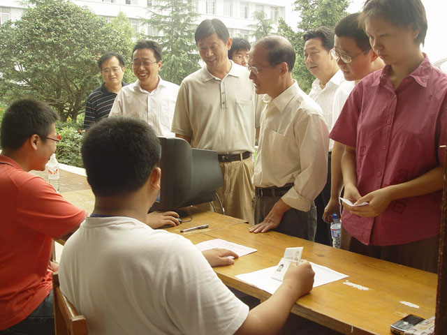 迎新工作现场气氛隆重热烈,同时,各个工作流程井然有序。今日的校园,花团锦簇、锦旗飘扬,把学校装点得格外喜庆,翠柏绿草错落相环凸显无限生机,为09级新生营造了一个到家的感觉。各部门、各组织在校区(学院)的统一安排和协调下,各项工作分工明确、配合默契,为新生办理报到手续提供一条龙服务,力求将迎新工作做到尽善尽美。校区(学院)在火车站、汽车站设新生接待处,安排专门老师负责接站,并开通免费班车为新生和家长的提供接送服务;各系和各职能部门把办公室搬到了迎新现场,进行现场办公,务求快捷方便的为新生办理入学手续;校区(学院)学生组织在学校入口处和迎新现场设置咨询服务站,迎新服务志愿者整装待发,为新生和家长提供热情的咨询和服务。
