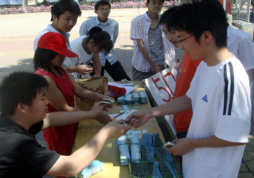团委领导和老师高度重视此次爱心义卖活动,号召广大同学积极参与活动,为残疾人改善生活环境贡献自己的一份力量。经过青年志愿者们一系列的精心准备,义卖现场“‘我和你,心连心’爱心义卖活动”宣传条幅随风飘扬,精美书签映入眼帘。此外,青年志愿者们还以展板形式向广大同学展示了残疾人的生活图片,让现场同学更加真实的感受到了他们背后蕴藏着的生生不息、与命运抗争的感人故事。青年志愿者们的积极宣传,感染很多同学来到义卖现场,驻足咨询,并加入义卖活动中,用自己的实际行动为残疾人事业做出贡献,活动声势逐渐扩大。活动在温馨、和谐的气氛中进行了一天,最终募得筹款512元将全部用于改善贫困残疾人的居住条件等方面。采访中,同学们表示,在帮助残疾人的过程中,既培育了关心他人、扶助弱者的爱心,同时又是一次社会道德和拼搏精神的自我教育,愿意加入到这种有意义的活动中,并说明在以后的学习和生活中,会学习残疾人那种志在奉献、坚韧不拔的进取精神和高尚情操。