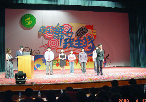 4月17日,西校园礼堂灯火辉煌,人声鼎沸,由校区(学院)团委主办,信息工程系承办的“我的舞台、我主持”第四届金话筒主持人大赛在此隆重举行。泰安电视台“天天说事”栏目首席主持人李兆峰,校区(学院)团委、各系团总支相关负责老师观看了比赛,并担任大赛评委。