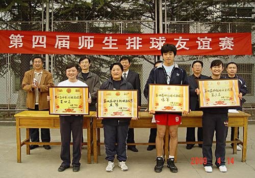 在校区(学院)学生处、团委的精心组织下,4月14日,第四届师生排球友谊赛在西校园排球场圆满落幕。经过激烈角逐,经管系艾红梅队摘得桂冠,学工队获亚军,袁庆远队和周广文队分获三四名。