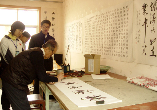 红十字爱心协会代表校区(学院)向社会福利院敬献了题为“温暖人间,服务社会”的锦旗,感谢他们为福利事业所作出的贡献。同学们与福利院的老人们围坐在一起,畅谈奥运和国家的政治、经济、社会发展的可喜变化。此外,同学们还为老人们表演了精心准备的节目,如《红灯记》、《女驸马》等多首曲目的选段和自创舞蹈等,为老人们带去欢声笑语。精神矍铄的老人们也即兴表演了节目。一位老人兴高采烈地为同学们表演了二胡独奏,并现场挥毫“大展宏图”、“艺海书乡” 两幅作品并将其送给红十字爱心协会留作纪念,社会福利院里洋溢着融融的暖意。