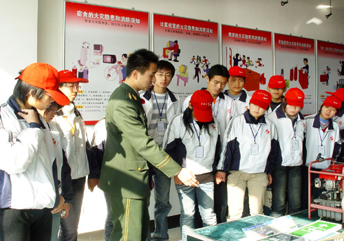 同学们的到来受到了特勤中队领导的热烈欢迎。在中队官兵的带领下,同学们与消防队员进行了面对面交流,全面地了解了消防器材、车辆的用途及其操作方法,并在副中队长蓝立安的指导下动手实践。训练场上消防官兵们通过原地穿战斗服、攀登挂钩梯、坐膝悬垂等消防技能的表演,向同学们展现了当今消防部队良好的军人风貌和特别能吃苦、特别能战斗的精神品质,博得了同学们的阵阵掌声。获得“抗震救灾先进个人”称号并荣记个人一等功的副班长李小改向同学们讲述了他们在灾区的经历与感受。他说:“为人民服务,再苦再累也要坚持到最后”。此外,同学们还兴致勃勃地参观了官兵宿舍和体育器材室。为期一天的参观学习使同学们体会到了警营生活并增强了消防安全常识。同学们纷纷表示在以后的学习、生活中,将为促进消防知识的宣传和普及贡献自己的力量。
