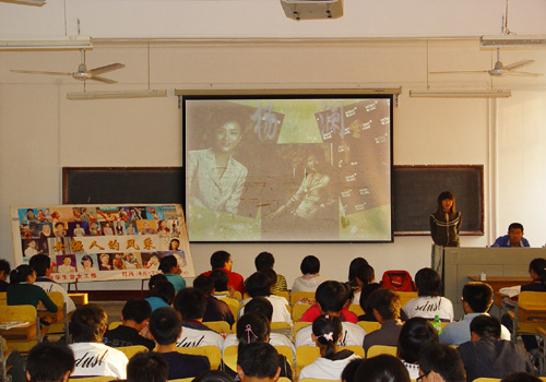 活动得到了校区(学院)学生工作处的大力支持,主要面向08级新生开展。活动现场座无虚席,以视频的形式向同学们展示了杨澜、倪萍两位成功女士的成长历程,使同学们感受了杨澜从走出《正大综艺》主持人的光环出国留学的艰辛,到回国发展喜获硕果的坎坷人生以及倪萍在压力中求发展、在竞争中谋出路的主持人生活,得到了同学们的一致好评。