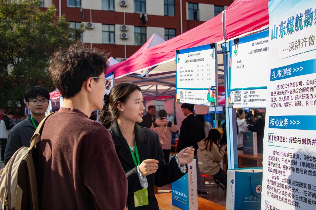 10月18日上午,山东科技大学泰安校区“‘就’选山东‘位’你而来”2025年秋季校园双选会在西校园礼堂前广场顺利举行。本次双选会吸引了来自省内外的200余家单位参会,涵盖机械制造、电气、金融、计算机、化工、建筑、教育等多个行业,提供就业岗位6000余个,参会学生1400余人次。