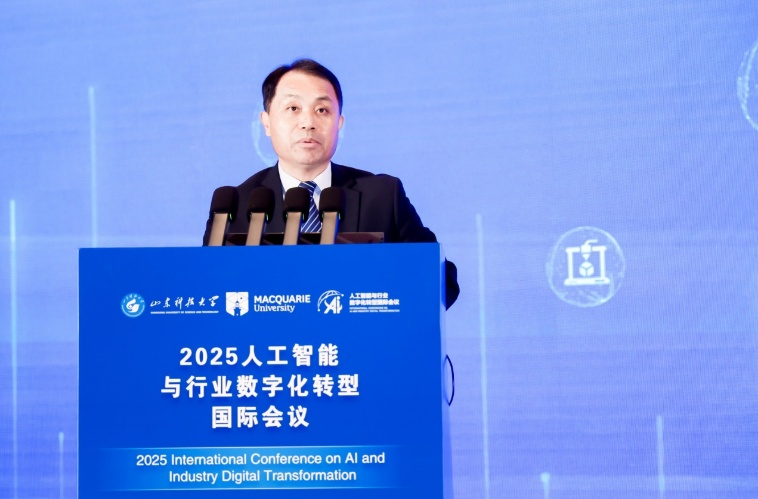 10月31日至11月2日,2025人工智能与行业数字化转型国际会议在青岛举行。会议由山东科技大学和澳大利亚麦考瑞大学联合主办,泰安校区作为支持单位、财经学院作为主要承办单位全程参与推进各项安排。校区党委书记吴正龙作为大会咨询委员会成员参会,大会学术委员会副主席、财经学院院长刘庆志在会上发言。会议吸引了7个国家71所高校的280余位专家学者和业界精英参会,共设1个主论坛、3个特约报告论坛及12个平行分论坛,搭建起跨领域、国际化的学术交流与实践探讨平台。