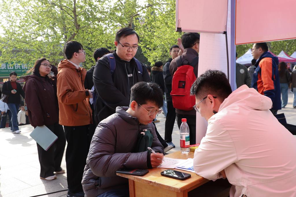 为保障双选会成效,校区提前谋划。3月,校区党委书记吴正龙带队赴青岛校区招聘会,主动邀请用人单位来泰安校区。校区提前发布参会提示,帮助学生精准匹配岗位;聘请20位教师担任“就业服务专员”,向企业推荐毕业生;选聘202名学生骨干担任“引才大使”,一对一服务参会企业,深化校企联系。
