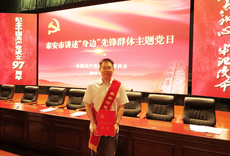 6月29日,在泰安市庆祝中国共产党成立97周年暨讲述“身边”先锋群体主题党日活动中,泰安市委命名山东科技大学机电工程系学生第一党支部为“泰山先锋”红旗党支部;授予王清标“泰安市优秀共产党员”称号。(文/图:张田)