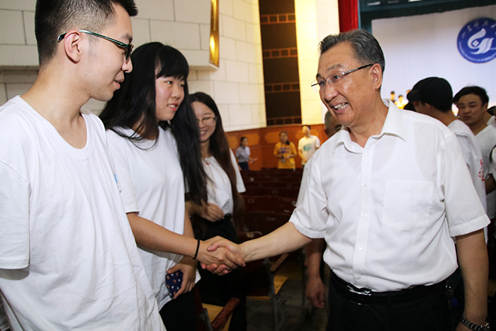 在同学们学有所成,行将起航离开家园之际,他送给毕业生三句嘱托:一是怀家国之心与时代同行。在新一轮科技革命蓄势待发,创新、协调、绿色、开放和共享的发展理念时代之下,怀着“得大者可以兼其小”之心,将个人进步与国家、民族的发展结合起来,成为共和国的脊梁。二是怀诚敬之心与他人相处。希望同学们少做低头族,把“低头”的时间用来看路,用来了解和关心他人,用来充盈和完善自己,学会兼收并蓄,尊重他人、善待他人。三是怀淡泊之心雕琢自己。希望同学们能迈稳步子、夯实根基、久久为功,不断以真善美雕琢自己、认知自己、完美自己,保持纯朴的情感,养成高洁的情操,努力成为一个高尚的人。