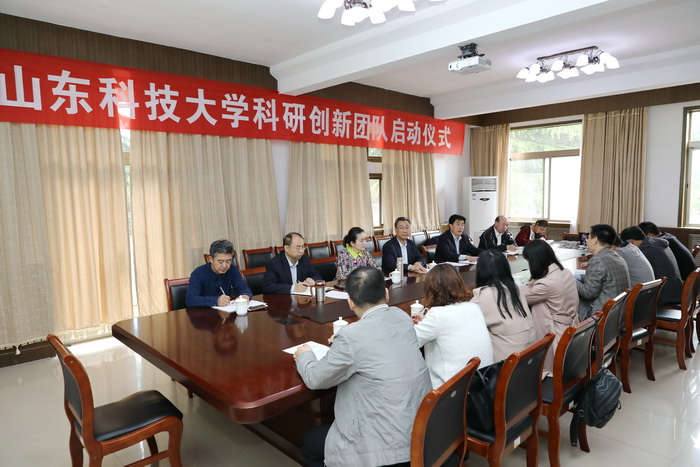 仪式上,科研部主任朱学军宣读了《关于公布2018年度山东科技大学科研创新团队支持计划项目的通知》;团队负责人王清标对照校级科研创新团队建设要求详细汇报了团队的建设目标、任务分解情况以及完成任务的具体举措;资土系主任贾宏俊代表团队所在单位表态,将全力以赴给予团队支持和配合,确保完成学校任务要求。