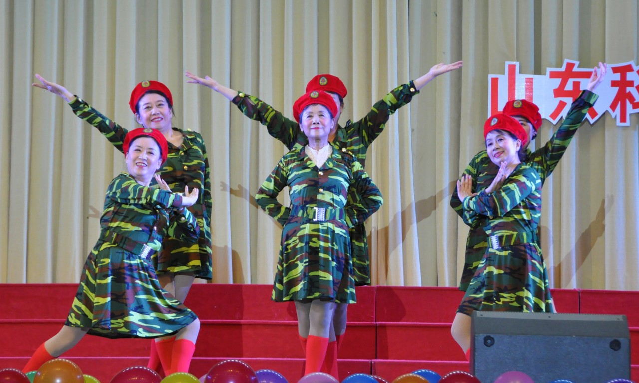 联欢会在热情豪迈的大合唱《我们走在大路上》中拉开序幕,女声小合唱《我和我的祖国》、男女声小合唱《中国、中国,鲜红的太阳永不落》、男声小合唱《天路》、朗诵《红船初心永不忘》、舞蹈《共圆中国梦》等节目紧扣时代旋律,唱响了学习宣传贯彻党的十九大精神的新时代强音,反应了广大离退休职工热爱祖国,热爱党,共享美好生活的精神状态;方言小品《离退休生活一角》、舞台剧《唱脸谱》等节目构思新颖,妙趣横生,引人入胜,为观众带来别样的艺术体验;舞蹈《难忘今宵》、《晚风吹过哨塔》、快板《学文化》、时装表演、《二十四式太极拳》、男声独唱《我像雪花天上来》、京歌《故乡,北京》等节目精彩纷呈,展现新形势下老年人意气风发,与时代同步的精神面貌;由我校离退休转业军人组成的战士合唱团带来的节目军歌联唱,铿锵嘹亮的歌声引来观众点赞,高亢激昂的表演将联欢会气氛推向高潮;演出在喜庆的红绸舞《九九艳阳天》中圆满落下帷幕。
