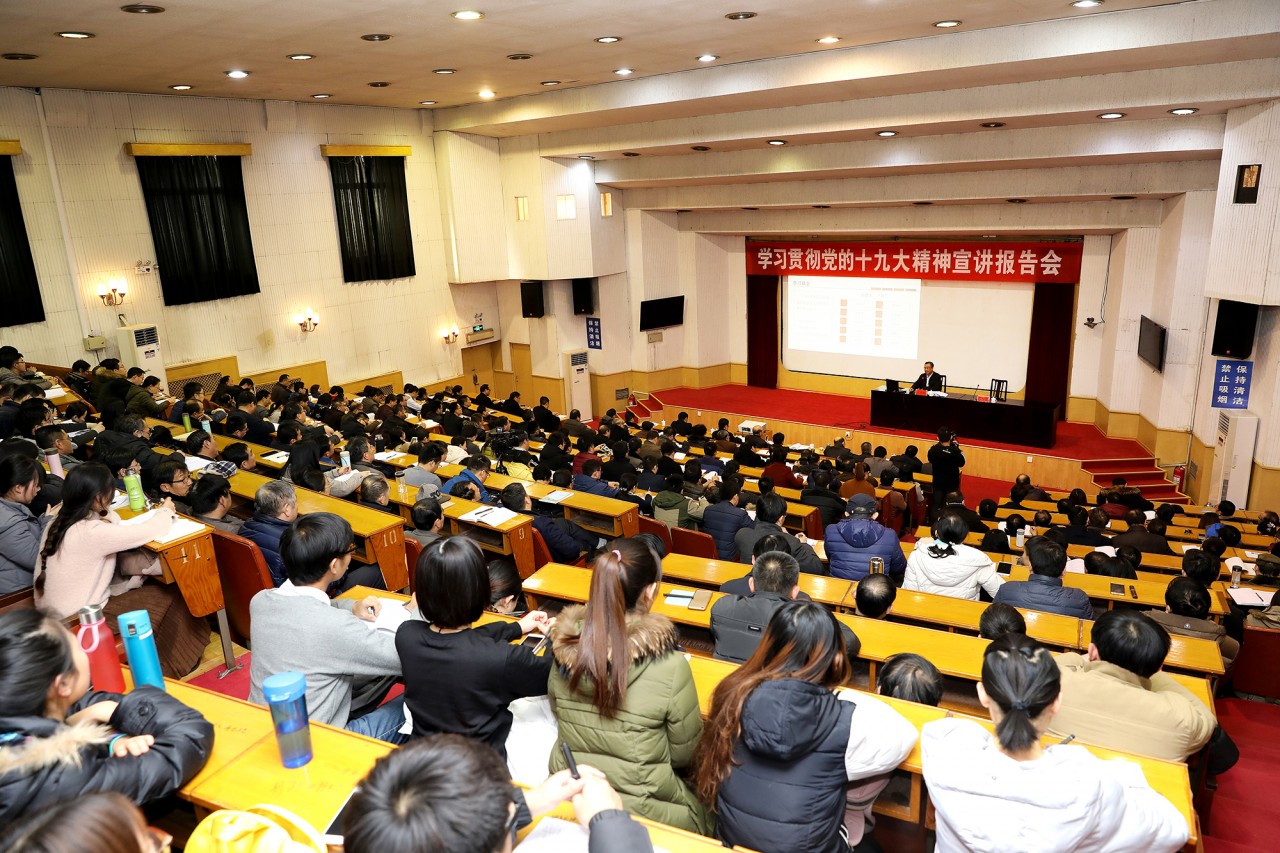 12月19日,山东科技大学泰安校区举办学习贯彻党的十九大精神宣讲报告会,副校长兼泰安校区党委书记、管委会主任王少鹏作了宣讲报告。校区、离退休工作处、继续教育学院科级及以上干部,党支部书记,教师代表,学生党员代表等聆听了报告。报告会由校区党委副书记苏同营主持。