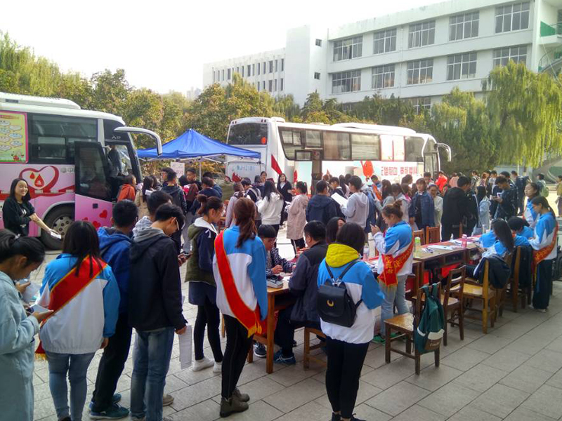 校区、学院团委十分重视无偿献血工作,始终将其作为大学生“服务社会,拯救生命”的一项重要任务,工作上高度重视,并通过精心组织,将无偿献血工作落实到行动上。每学年分别在东、西校园至少集中组织“每一份献血都是生命的礼物”、“同在蓝天下,共享生命的感动”两次大型校内献血活动。据统计,8年来我校大学生参与无偿献血超过3800余人次,总献血量超过1000000毫升。特别是近三年以来,无偿献血人数和总献血量连年递增、屡创新高。其中,2015年无偿献血活动为期18小时,累计献血365人,献血量达到107600ml;2016年无偿献血活动为期36小时,累计献血560人,献血量达173000ml;2017年无偿献血活动为期54小时,累计献血904人,献血量达275900ml。