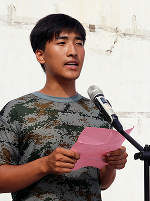 2017级新生学员代表孙梦琪、任传儒在仪式上发言。(文:郑璐 李晓禾 李楠)