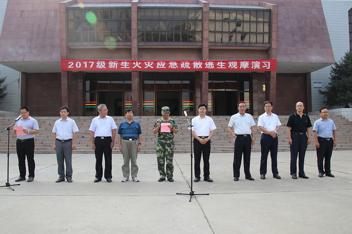 校区学院党委副书记苏同营讲话。他提出了三点要求:一、高度重视防火工作,进一步强化安全责任意识,落实消防法规,把防火工作做扎实、做到位。二、加强消防知识学习,以《学生安全手册》为基点,要求学生运用自如、融会贯通安全知识,营造平安校园环境。三、认真贯彻落实防范措施。“隐患险于明火,防范胜于救灾”相关部门要建立健全安全工作制度和各种紧急预案,严格落实工作要求,加强巡查,及时发现并消除隐患,为学校安全稳定做保障。他强调,一定要以此次演练为契机,进一步掌握防火、疏散、自救、逃生等消防安全知识和方法,增强防火自救的能力。同时,要学习防范交通安全、预防“两抢”远离毒品、邪教、传销的方法。他祝愿同学们有一个平安灿烂的大学生活。
