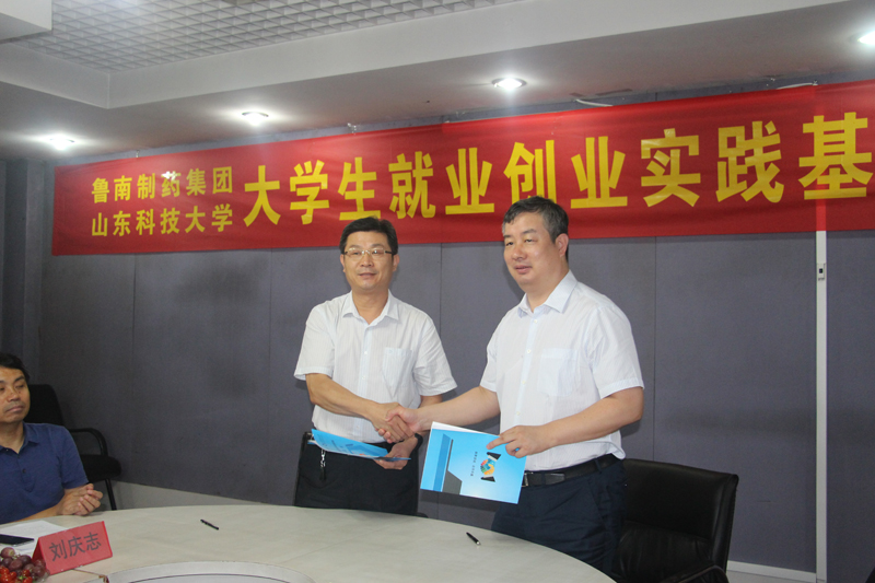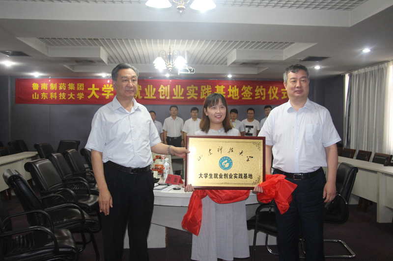 7月18日,我校与鲁南制药集团股份有限公司共建大学生就业创业实践基地签约揭牌仪式在临沂鲁南制药集团总部举行。副校长兼泰安校区党委书记、管委会主任王少鹏,校区党委副书记苏同营,鲁南制药集团副总经理李宝杰,校区党政办公室、经济管理系及集团人力资源部主要负责人出席签约揭牌仪式。