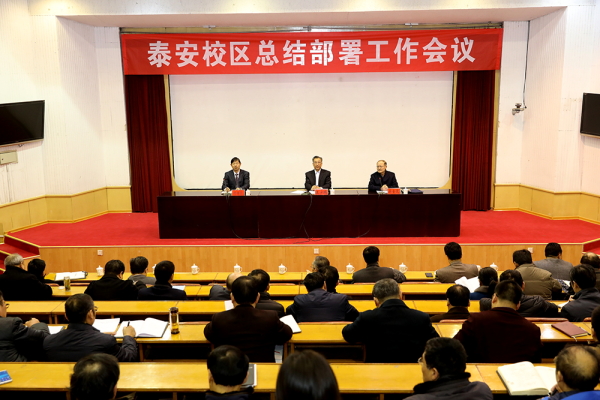 2月19日,泰安校区召开总结部署工作会议,副校长兼泰安校区党委书记、管委会主任王少鹏出席会议并讲话,校区管委会常务副主任蒋金泉总结部署工作,会议由校区党委常务副书记刘传玺主持。校区领导,科级以上干部,教师代表,辅导员等参加了会议。