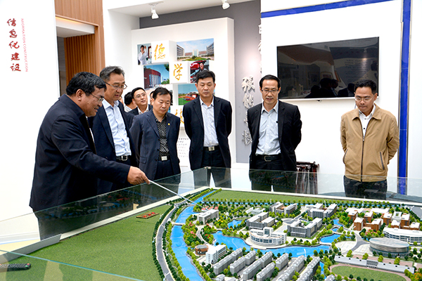 下午,考察组与奎文区政府、潍坊市科技合作中心及潍坊市相关企业负责人进行了座谈。考察组观看了奎文区基本情况专题片,听取了科教创新园建设规划介绍。座谈中,王少鹏介绍了我校的基本情况以及办学实力与优势,科研处副处长董桂刚就我校科研创新及成果转化情况作了详细介绍。双方还就众多科技领域合作意向进行了深入探讨。座谈会后,考察组又实地考察了科教创新园的建设工地。