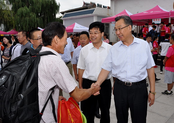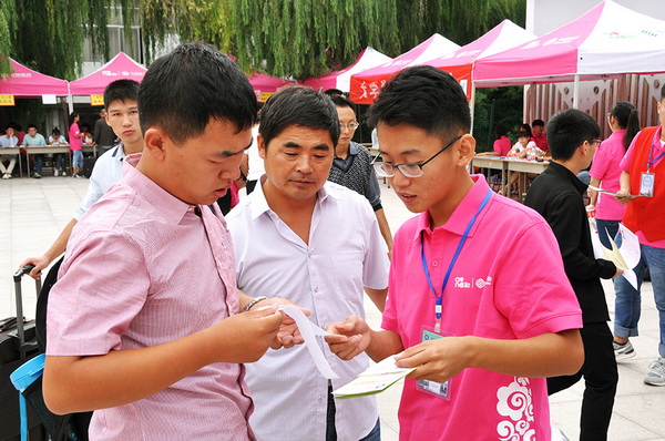 副校长兼校区、学院党委书记,管委会主任、院长王少鹏及校区、学院党委副书记苏同营在相关单位(部门)负责人的陪同下对迎新工作进行了现场指导。王少鹏首先检查了校内外交通疏导情况,要求工作人员确保通行顺畅、交通安全,同时,他还对为迎新工作而辛勤付出的保安、交警、城管等人员表示感谢。在各系新生报到处,他与迎新人员进行了交流,详细了解了新生报到情况,并同学生家长进行了亲切交流。在迎新现场,他发现了一对因家庭困难交不起学费而怯怯在路边张望的父子,立即要求有关人员尽快为这名新生办理报到手续,并向家长说:“你放心,孩子到了这里,就是我们的学生,我们会尽力不让学生因为生活方面的问题而失学。”在新生宿舍、教学楼、食堂、运动场等处,王少鹏详细了解了新生及家长对学校工作的意见和建议,并要求有关部门和人员本着安全、方便的原则,迅速解决新生生活中存在的问题和困难。(文:杨莹 郝思愉)
