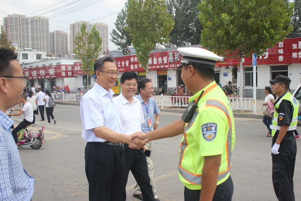 王少鹏等与学生家长握手交谈(图:任卫兵)