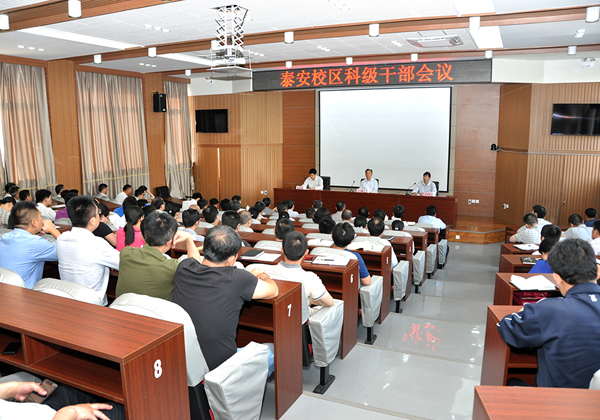 5月30日,泰安校区召开全体科级干部会议,与调整后的科级干部进行集体谈话。副校长兼泰安校区党委书记、管委会主任王少鹏出席会议并讲话,校区党委副书记苏同营宣布了泰安校区科级干部名单。会议由校区党委常务副书记刘传玺主持。