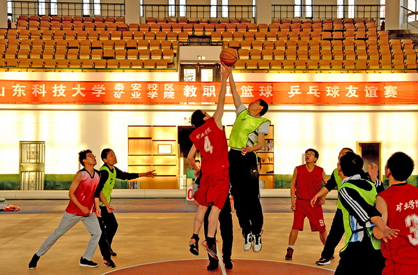 3月26日上午,矿业与安全工程学院党委书记梁赛江、院长谭云亮等一行14人到校区交流研讨。校区管委会常务副主任蒋金泉,资土系、采矿工程研究院及科研部负责人,采矿教研室全体教师等与矿业学院代表进行了座谈。交流期间,校区还组织了与矿业学院代表队的篮球和乒乓球友谊赛,副校长兼泰安校区党委书记、管委会主任王少鹏观看并指导了比赛。