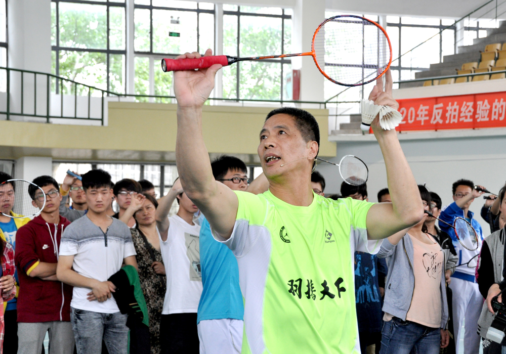 4月28日,校区、学院特邀前国家羽毛球队主力队员、被誉为“反拍王”的世界羽毛球冠军熊国宝教练在体育馆为来自泰安市及各个学校的羽毛球爱好者进行了现场教学。