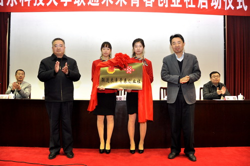 中国联通泰安分公司副总经理侯忠首先介绍了“联通未来青春创业社”。创业社是团省委与中国联通山东分公司联合发起成立的一个大学生创业组织,纳入学校管理并依靠大学生自治,其主要职能是引进、培育适合学生的创业项目,发布有关的创业信息,引进并服务于优秀的创业团队,引导大学生利用课外时间开展创业技能竞赛和创业社会实践。创业社是校内创业实践基地,不仅为在校大学生提供创业实践平台,还为在校学生提供创业孵化服务。