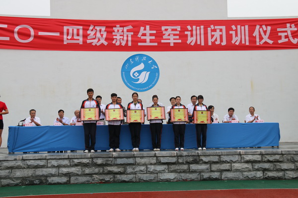 校区管委会副主任、学院副院长王以功宣读了对“优秀军训班”、“优秀教导员”、“优秀教官”的表彰决定,对资土系军训大队第一军训班等11个军训班、张田等14名教导员、杨起源等17位教官进行了表彰。