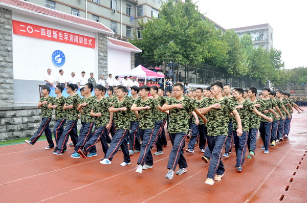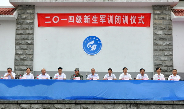 9月12日,泰安校区、泰山科技学院2014级新生军训闭训仪式分别在东、西校园举行。校区、学院负责人蒋金泉、刘传玺、王以功、苏同营、王民,承训部队教导员丁杰、指导员李福龙,相关部门负责人及各系党总支书记出席了闭训仪式。仪式由学生处处长宋传文主持。