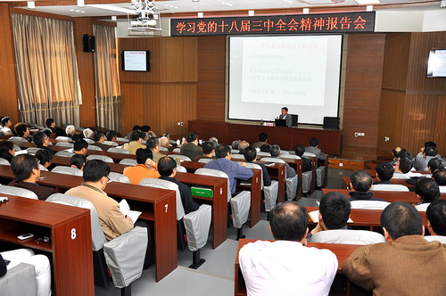 4月9日,泰安校区举办学习党的十八届三中全会精神辅导报告会,邀请泰安市委党校副校长梅长冬作了题为“牢固树立马克思主义群众观”的专题报告。副校长兼泰安校区(泰山科技学院)党委书记、管委会主任(院长)王少鹏,校区科级以上干部、离退休职工各党支部负责同志听取了报告。报告会由校区(学院)管委会副主任(副院长)王民主持。